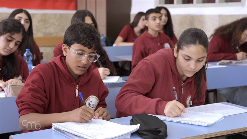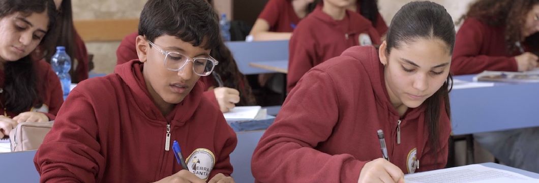 Leerlinge aan de secundaire school Terra Santa te Ramallah