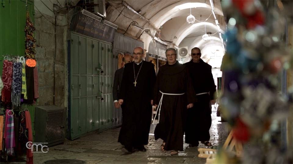 Het is een heldere, rustige zaterdagochtend in Jeruzalem. In de Basiliek van het Heilig Graf herneemt het komen en gaan van de pelgrims, terwijl het land zich eindelijk openstelt voor de hoop op vrede. Twee sleutelfiguren van deze Kerk in het Midden-Oosten, met name de Custode van het Heilig Land en de Latijnse Patriarch van Jeruzalem, worden door de bewaarder van het Heilig Graf vergezeld en kijken naar de deur van de basiliek. Deze werd door iemand beschadigd en dient dringend te worden hersteld. Beiden kwamen hier deze morgen bijeen zoals ze dat elke dag midden hun gelovigen doen. Samen hebben ze iets belangrijks aan de Kerk en aan de wereld te zeggen.