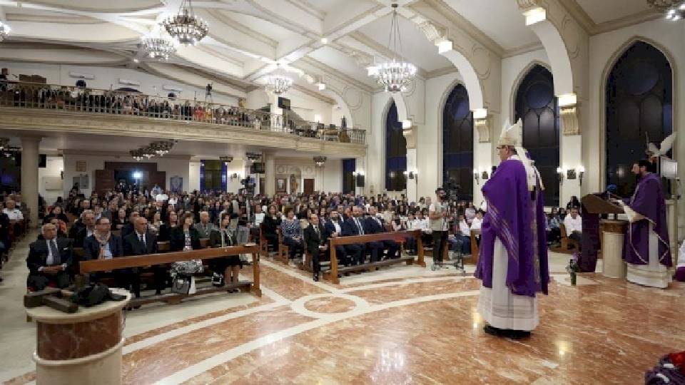 Het was E.H. Rifat Bader, de pastoor van de parochie, die Zijne Eminentie in Til'Al'Ali verwelkomde. Daarna richtte Mgr. Pizzaballa zich tot de parochianen en legde het belang en het doel van de pastorale bezoeken uit. Deze zijn erop gericht om de gelovigen te ontmoeten en hen te beluisteren. Tevens vroeg hij God om onze harten tot inkeer te brengen en ons toe te staan dat wij oprecht berouw voor onze zonden zouden hebben.