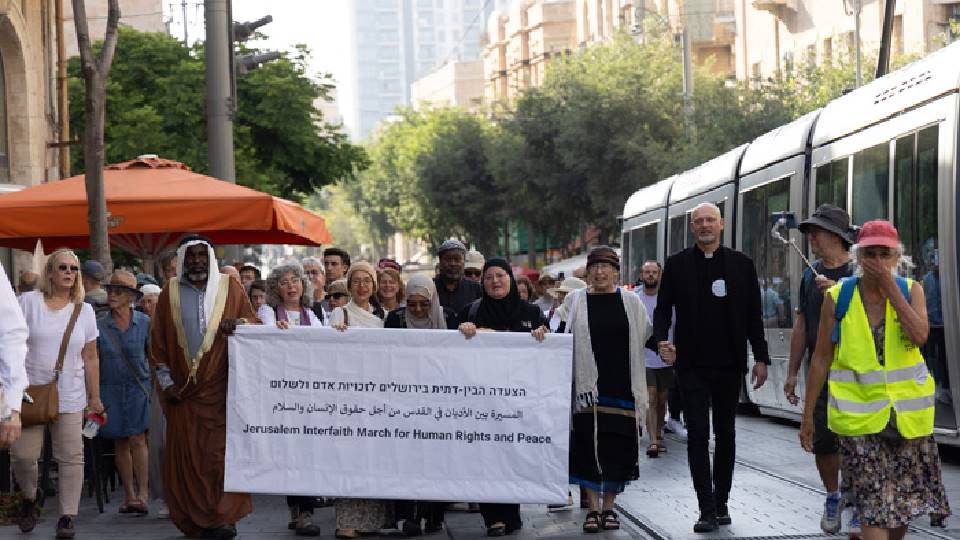 Interreligieuze mars in Jeruzalem voor de vrede