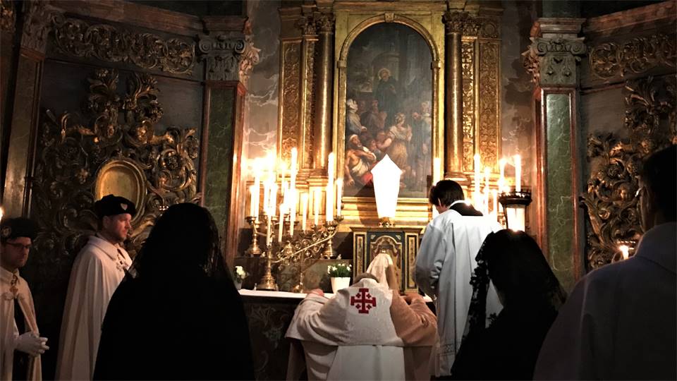 Onze aanwezigheid getuigde van de nodige vurigheid omdat wij ons net als Petrus en Johannes ook dit jaar opnieuw geroepen wisten om ons op het Paasfeest voor te bereiden. Als Ridders en Dames van de Ridderorde van het Heilig Graf van Jeruzalem beseffen wij dat wij onlosmakelijk met het Mysterie van Christus verbonden zijn. We kunnen de uitnodiging van Jezus niet negeren “Ga en maak de voorbereidingen op het Paasfeest,” willen wij geestelijk en emotioneel bij de nieuwe gebeurtenis van de Heer in al zijn schoonheid en rijkdom betrokken zijn. “Deze oproep van Jezus raakt ons rechtstreeks,” zo benadrukte ook de Kardinaal-Grootmeester in zijn Paasboodschap: “In het Paastriduüm, dat een aanvang neemt met het Eucharistisch Avondmaal op Witte Donderdag (de eerste dag), associëren we ons met het lijden van Christus in Getsemane. Wij volgen Hem in Zijn vernedering, Zijn dood en begrafenis (de tweede dag). We beleven daarna zeer innig de stilte van de sabbat (de derde dag) en blijven dan wachten op het Pascha der Opstanding, zoals de Heer het ons heeft voorgehouden.” (https://www.oessh.va/)