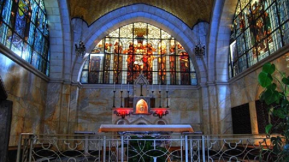 Het Evangelie vertelt ons dat Pilatus Jezus op deze plaats heeft gevangen genomen en Hem hier liet geselen. Ze hulden Hem in een purperen mantel en kwamen naar Hem toe met de woorden: “Gegroet koning der Joden”. Toen sloegen ze Hem, tot bloedens toe.