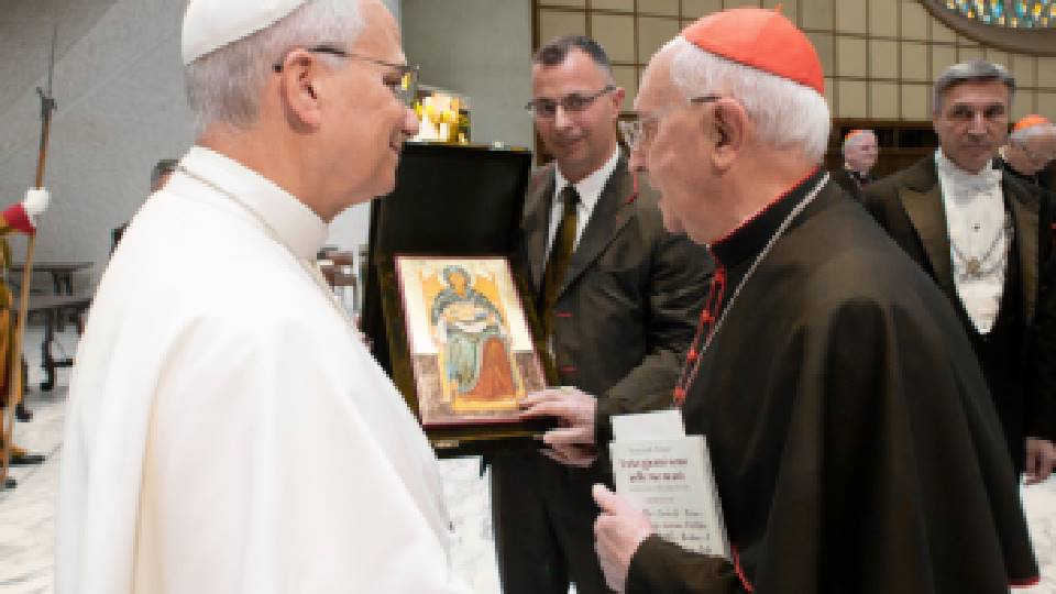 "We weten dat de Maagd Maria een Zoon had, die voor ons is gestorven maar uit de dood weer is opgestaan. Maar er was ook een klein meisje, dat ze op deze icoon in haar armen draagt", aldus de Grootmeester, terwijl hij de Maria-icoon aan de paus liet zien. "Dit kleine meisje wordt door de heilige stad Jeruzalem vertegenwoordigd en staat symbool voor de universele Kerk die wij met z’n allen vormen,” en met deze aanvulling wist Kardinaal Filoni een brede glimlach op het gezicht van de opvolger van Petrus te toveren. De Heilige Vader had immers met zijn bemoedigende woorden de harten van alle aanwezige Ridders en Dames diep geraakt.